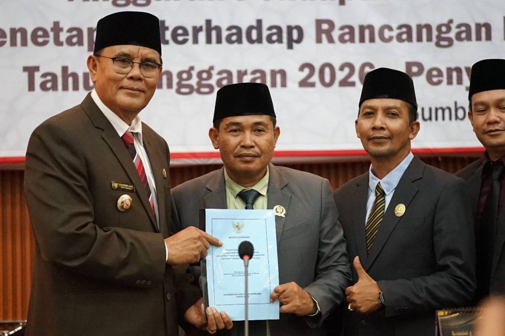 Dewan Perwakilan Rakyat Daerah (DPRD) Kabupaten Sumbawa resmi mengesahkan Rancangan Peraturan Daerah (Ranperda) tentang Anggaran Pendapatan dan Belanja Daerah (APBD) Tahun Anggaran 2026. Rapat Paripurna yang digelar di Ruang Rapat Utama DPRD Sumbawa ini turut dihadiri Bupati Sumbawa Ir. H. Syarafuddin Jarot, M.P., Sekda Sumbawa, Forkopimda, pimpinan OPD, serta seluruh anggota DPRD.