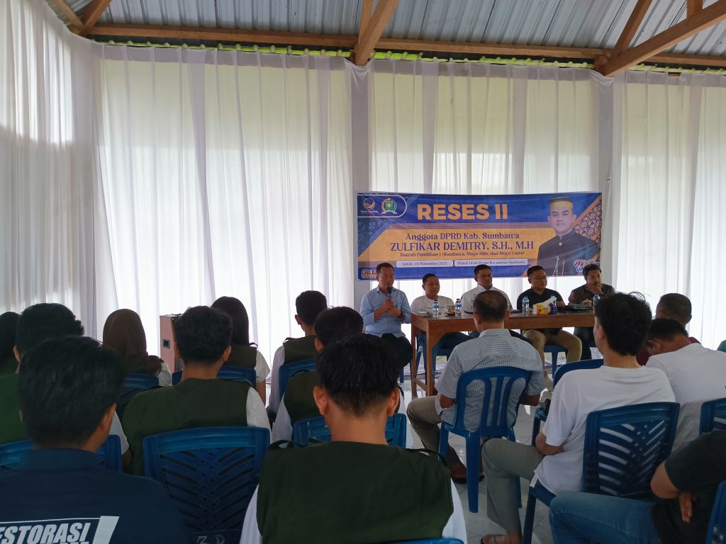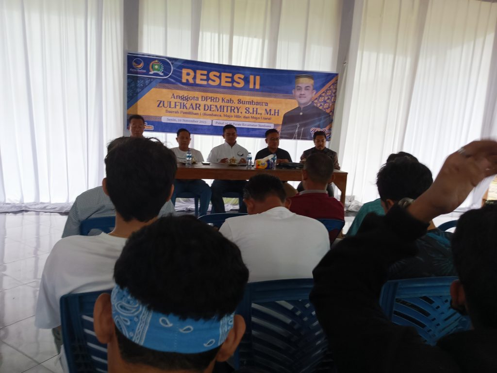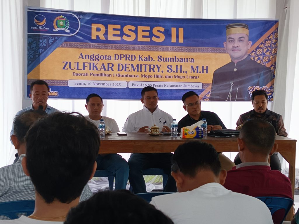 SUMBAWA, TAMANEWS.ID – Anggota Dewan Perwakilan Rakyat Daerah (DPRD) Kabupaten Sumbawa, Zulfikar Demitry SH., MH, sukses menggelar agenda Reses Masa Sidang II Tahun 2025 dengan suasana hangat dan kolaboratif. Acara yang bertajuk “UNDANGAN RESES” ini dilaksanakan pada Senin, 10 November 2025, pukul 16:00 WITA (Ba’da Asar) hingga Selesai, bertempat di Balai Restorasi, Lingkungan Perate, Kelurahan Samapuin, Kecamatan Sumbawa.